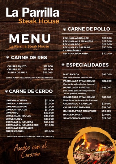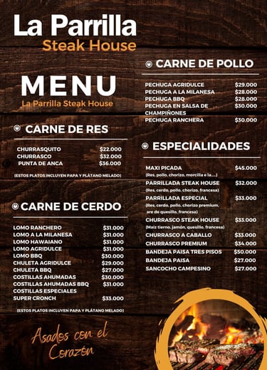 Bienvenido a La Parrilla Steak House, tu destino culinario en Cajamarca, Tolima, donde la pasión por las carnes a la parrilla cobra vida.